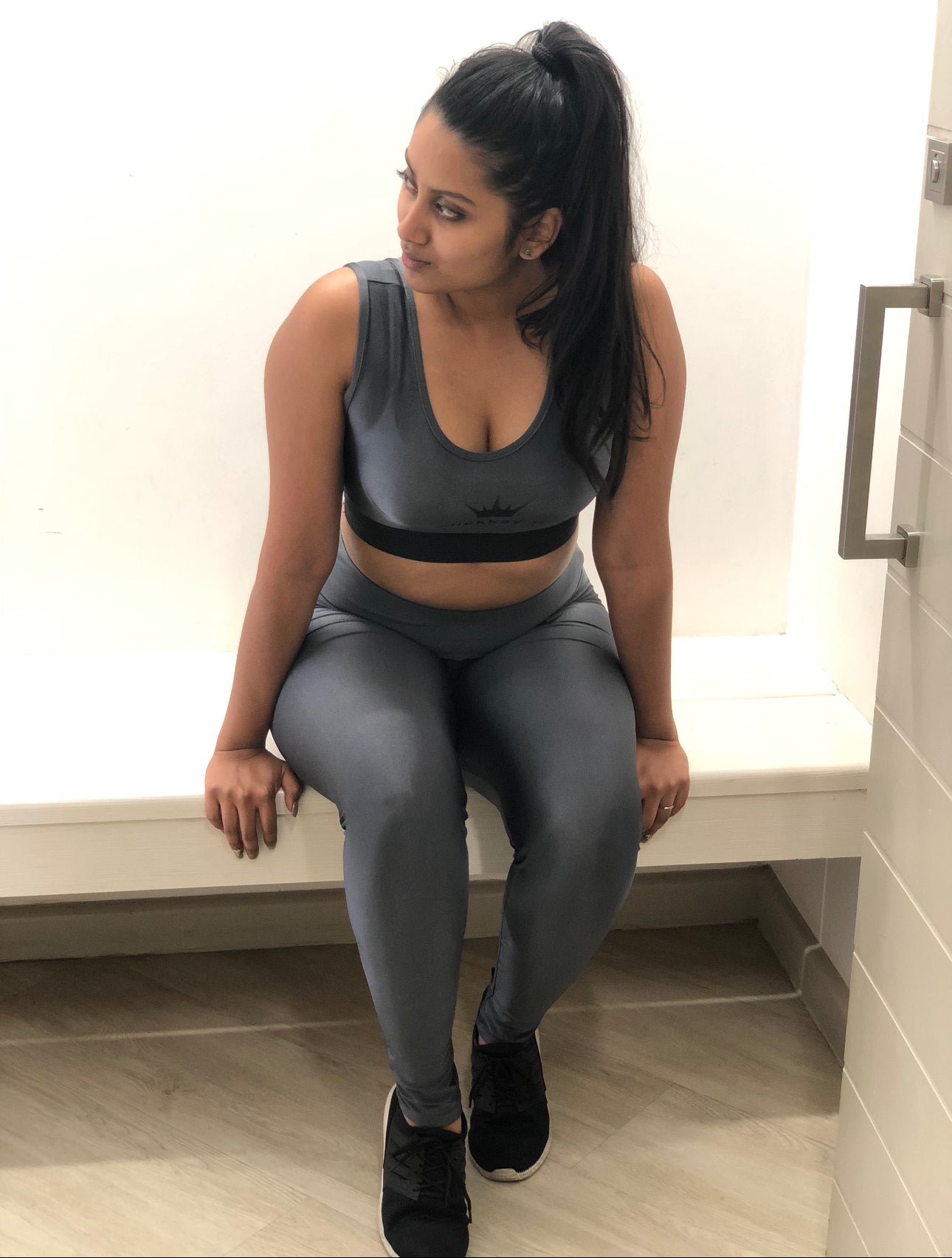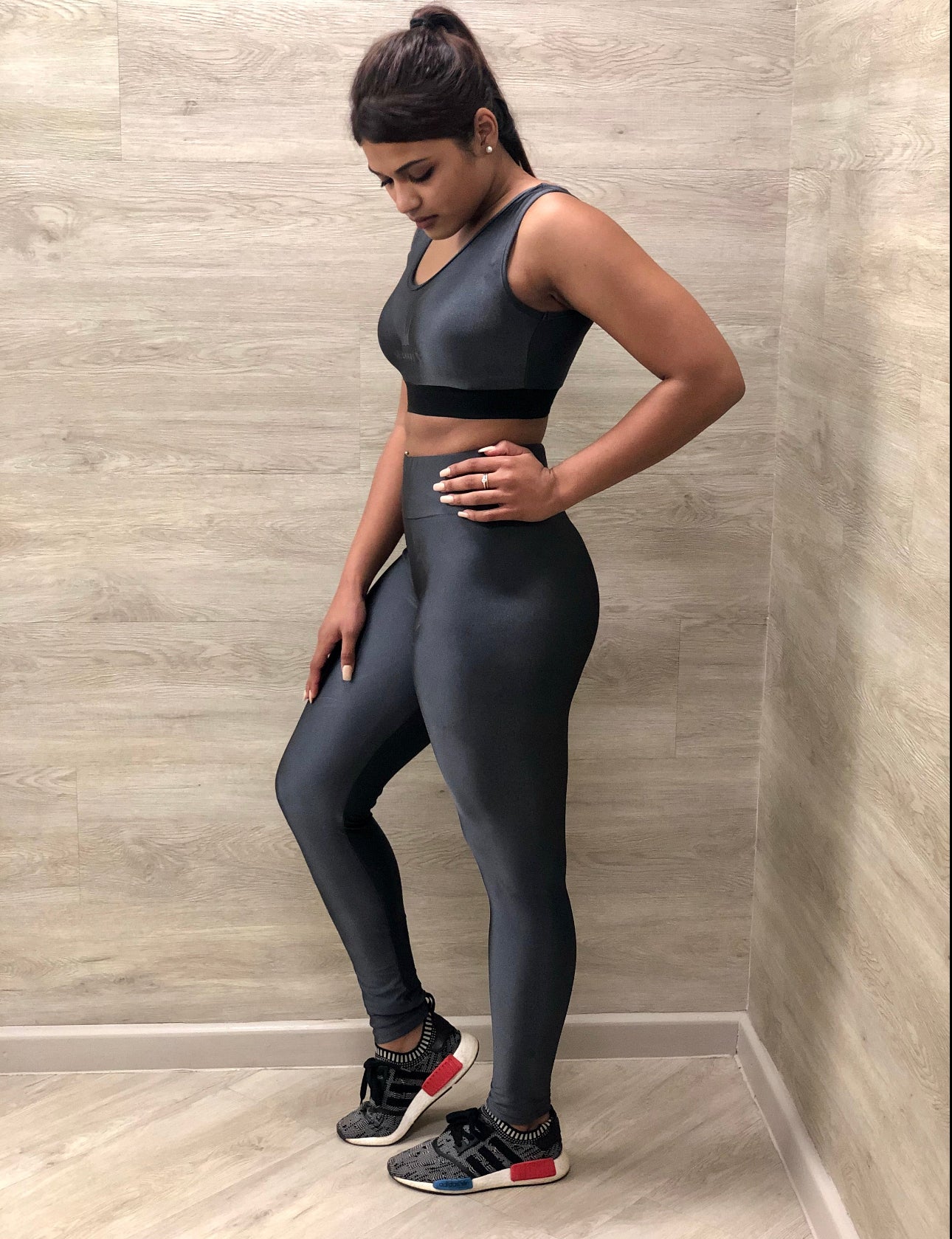 These grey metallic leggings feature a tailored fit, high-rise elasticated waistband, and a cinched silhouette to snatch your waist and hug your body from top to ankle. The hand-picked local fabric a luxe Lycra and Spandex blend gives you bold stretch with buttery softness.