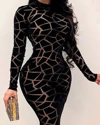 Gerene Bodycon dress, featuring mesh panels that add a subtle yet alluring touch to the elegant design, this dress is the perfect addition to your wardrobe.