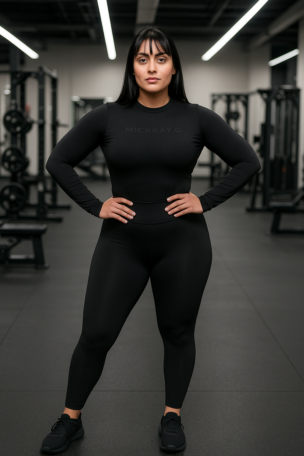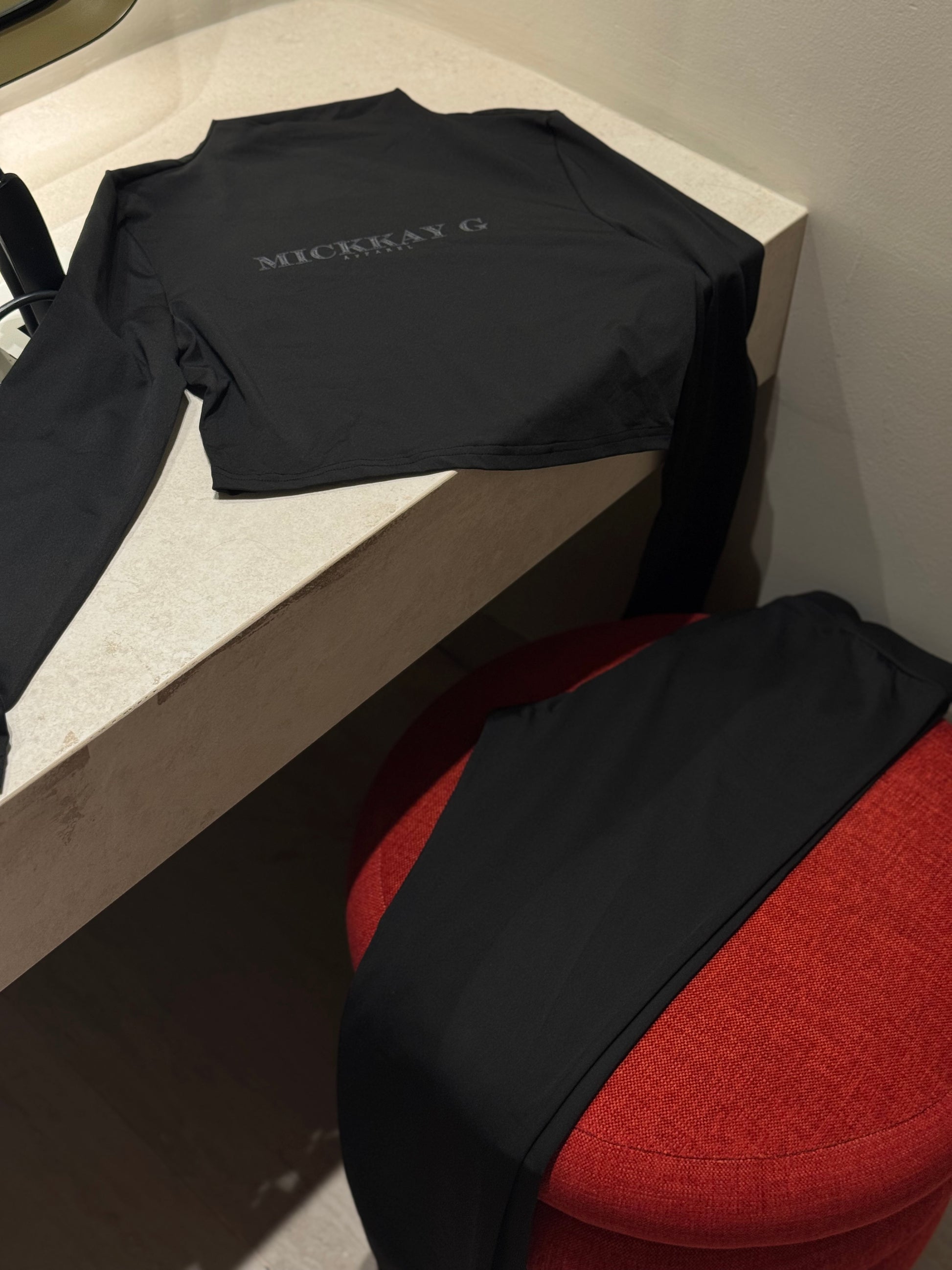 The Onyx Aura Active set is a perfect combo of fashion and function. The fitted long sleeve top hugs your body, while the leggings provide a flattering silhouette. Get ready to turn heads on your next workout or lounge day.